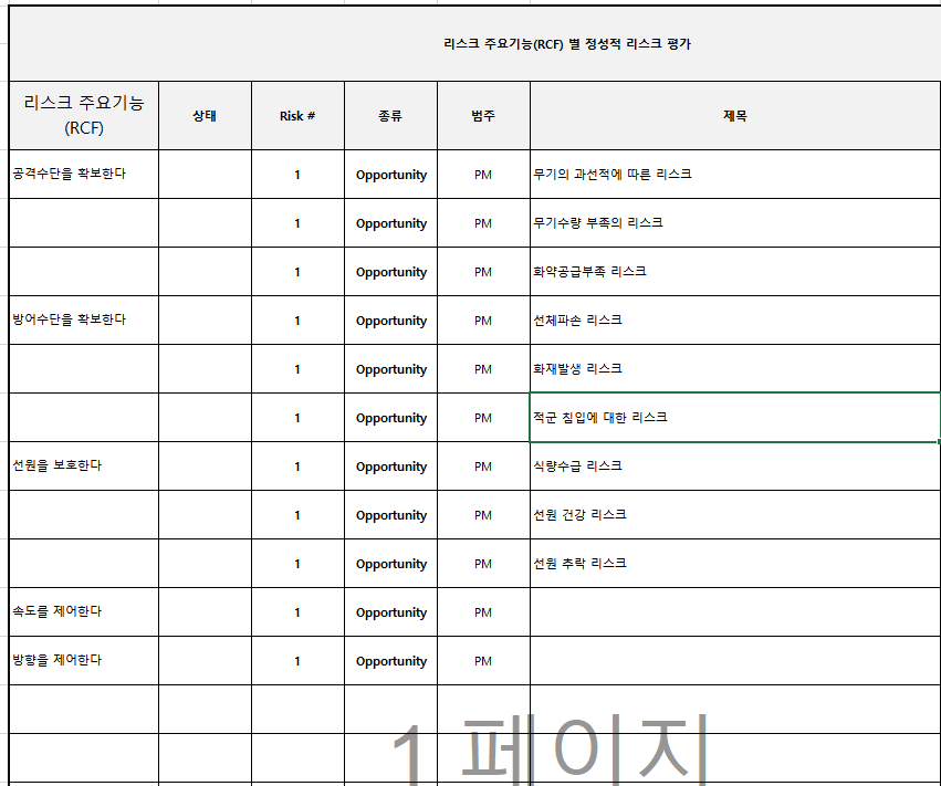 [훈련주제] 정보수집 및 기능분석 * 13:00~14:00 기능분석 및 RCF 식별 * 14:00~15:00 RCF별 리스크식별 * 16:00~18:00 리스크팀별 리스크완화전(Pre-mitigated) 원가 정량적 리스크 분석 실시 |